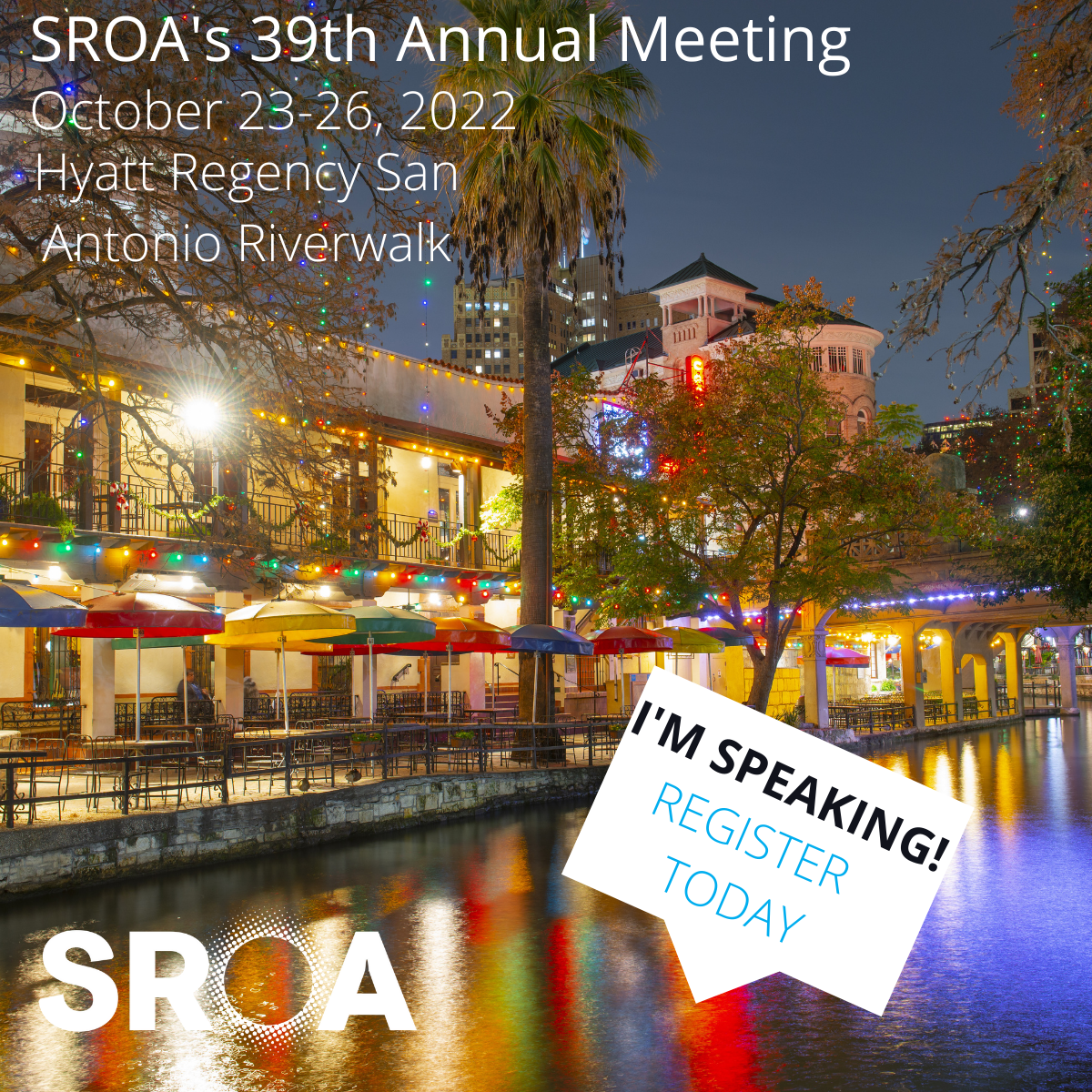 Help us make your presentation a success! Social media is a great way to create a conversation and get people excited for your session. Connect with SROA and SROA participants on any of the following platforms: